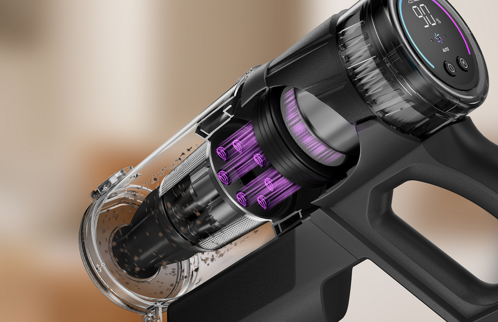 Con una forte potenza di aspirazione di 38 kPa e un motore digitale brushless da 550 W aggiornato, ReactiSense 530 gestisce senza sforzo sia lo sporco grossolano che la polvere fine, per prestazioni di pulizia superiori per lo sporco quotidiano.