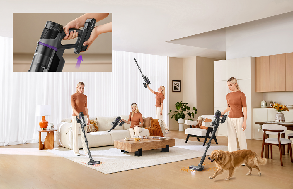 Goditi fino a 60 minuti* di autonomia - ideale per pulire fino a 150 m² in un solo passaggio, perfetto per grandi appartamenti con una sola carica.Con la nostra batteria aggiuntiva opzionale (venduta separatamente), puoi prolungare il tempo di pulizia: esegui compiti più grandi senza interruzioni per una casa perfettamente pulita.