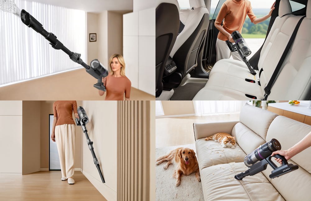 Sistema di pulizia 4 in 1 Aspirapolvere + apparecchio portatile + pulizia di precisione + pulizia del materasso